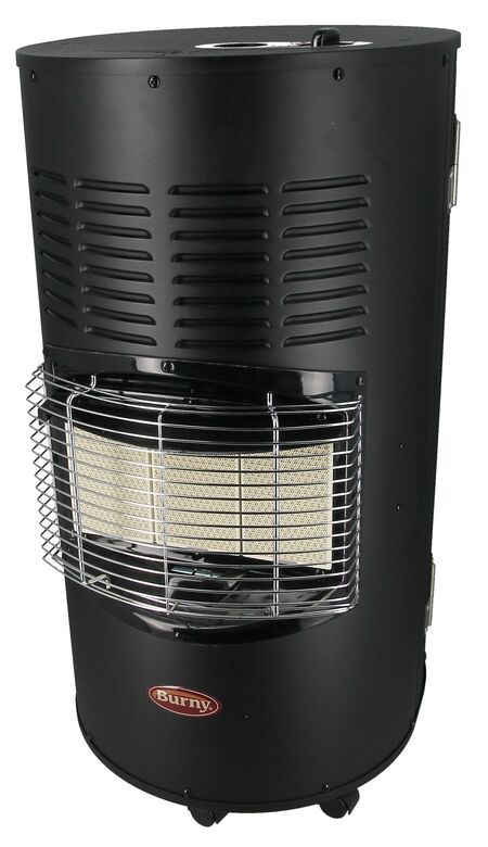 Heizofen SAHARA BLACK 4,2kW Gehäuse matt schwarz pulverbeschichtet, mit Piezo-Zündung, thermoelektrische Zündsicherung, Sauerstoffmangelsicherung, Sicherheitsgitter aus Chromstahl, 5 Lenkrollen, 3-stufig regelbar, Verbrauch max. 310g/h, inkl. Schlauch, ohne Regler